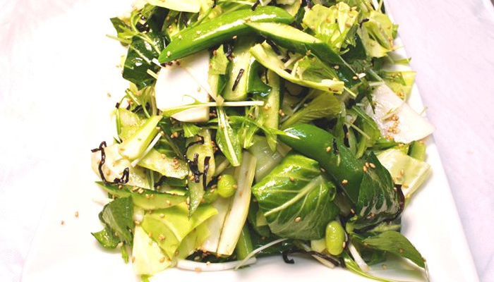 スナップエンドウ入りグリーン野菜の塩昆布サラダ