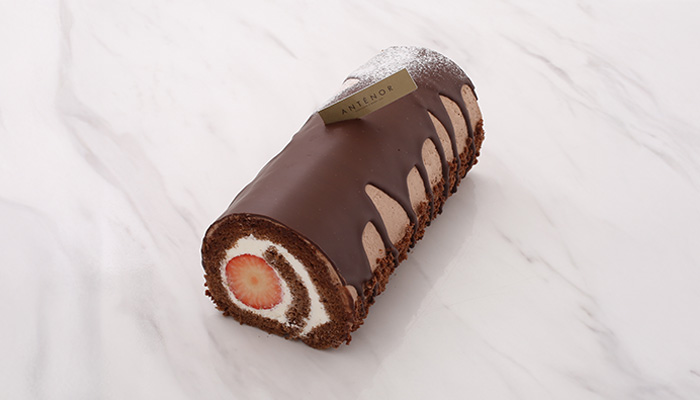 丸ごとの紅ほっぺ苺を、ソフトなチョコスポンジで巻きチョコレートでコーティングしました。