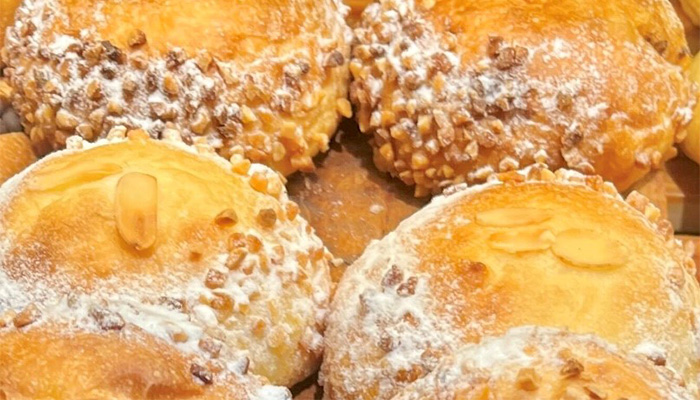 中には栗のクリーム、外にはアーモンドをトッピング。栗の香りとアーモンドの香ばしさと食感が楽しめる、秋の味わいのクリームパンです。