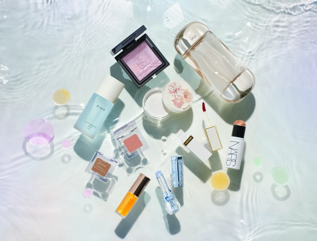 ツヤ、透ける彩り、みずみずしい輝き。夏の光に映える新作コスメを、ひと足先に。軽やかな表情をつくるアイテムがそろいました。