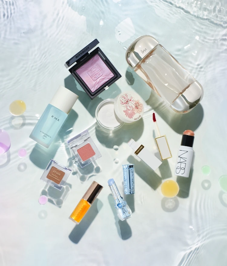 ツヤ、透ける彩り、みずみずしい輝き。夏の光に映える新作コスメを、ひと足先に。軽やかな表情をつくるアイテムがそろいました。