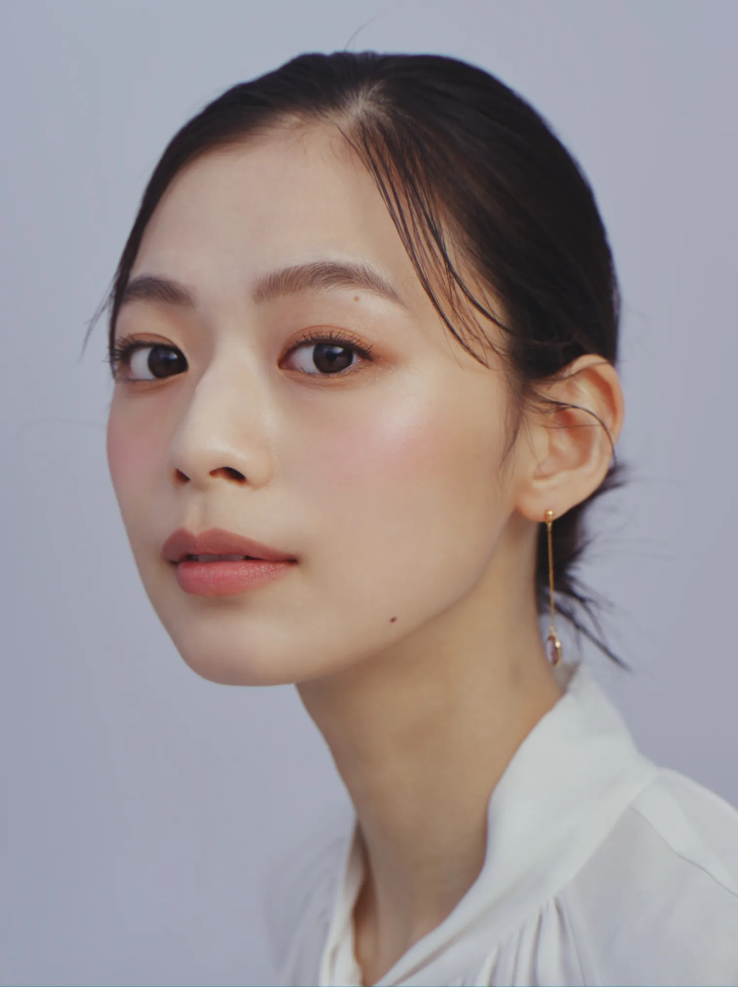 ピンクチークはビーンズ型で凛とした印象に