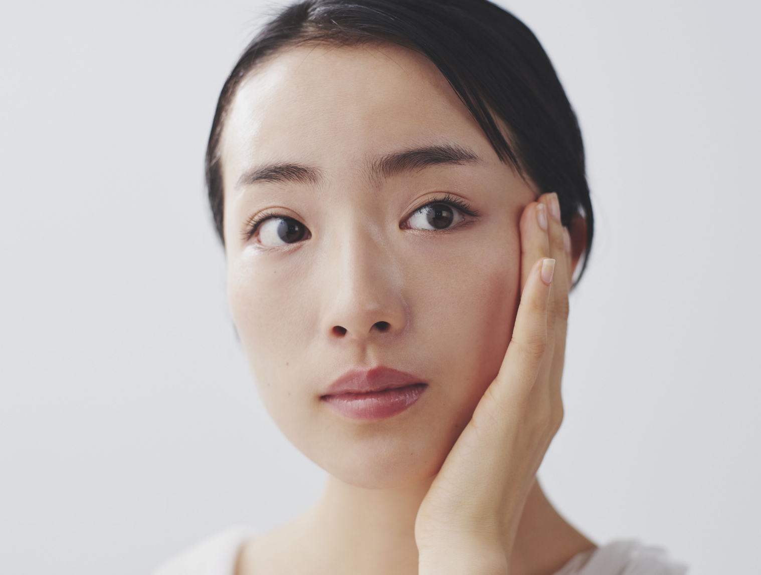 小鼻や毛穴の開きが気になる部分は指でクルクルと擦り込むように塗布。それ以外は内から外へ顔全体に、首のほうまで均一にすべらせるようにのばしていく。あごの裏側までのばし、顔と首のトーンを統一。