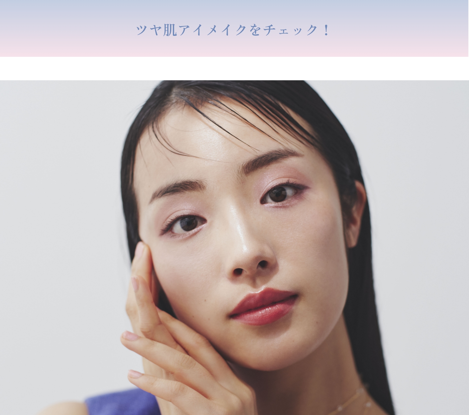 澄みわたる印象のツヤ肌をめざすには、下地はブルーがベスト。やわらかい光沢感を出すことで、立体的な顔立ちを演出する。
