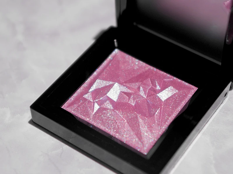 「クラッシュド ジェム」は、ダイヤモンドの輝きを最大限に引きだす研磨方法・ブリリアントカットに着想を得たというアイシャドウです。光を受けて多面的に輝く様子を再現するために、マイクロからビッグまで3つの異なるサイズの「多彩ジュエルパール」を配合。その絶妙なラメのミックス感は、単色塗りでも奥行き感のある、そして華やかな仕上がりを叶えてくれます。