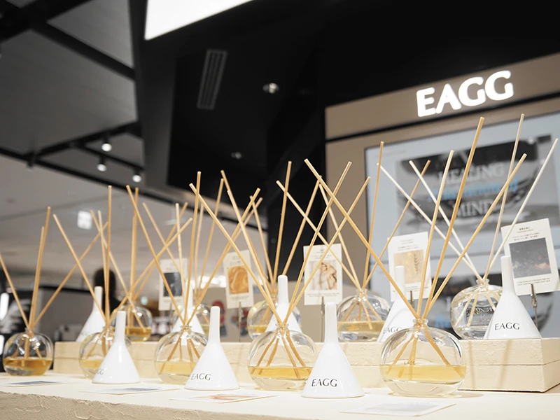 〈EAGG〉の心地よい香りで満たされた空間は、心休まるひとときを演出してくれそうです。何気ない日常も、上質で穏やかな時間にしてくれそうですね。ぜひ店頭で、香りの世界を体験してみてください。