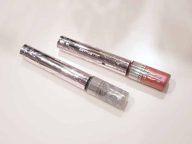 宝石のように輝く大粒ラメとパールが、リボンが舞うようにきらめく視線を演出します。まぶたはもちろん、涙袋にのせてみたり、目頭や目じりのワンポイントラインとして使ってみても、華やかで印象的な目元をつくります。