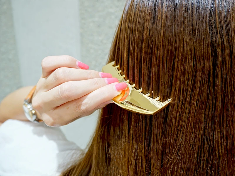 ※2手櫛の4束と比較した場合、ラブクロム(コーム)は32束で8倍細かく分けられます