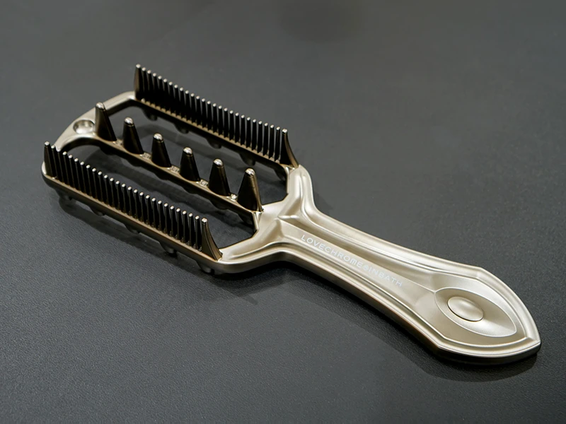 2011年に誕生した〈LOVECHROME®(ラブクロム)〉は、美容師やプロフェッショナルから支持される美髪コームを取り扱うブランドです。独自の特殊加工(JP CHROME-TECH®)により摩擦を抑え、静電気を吸着・拡散することで、髪を解きほぐします。また、球状の刃先が頭皮へのダメージを軽減するなど、髪と頭皮の両方にやさしい設計が特徴です。