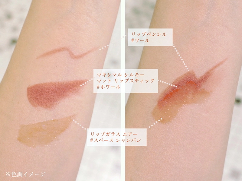 ペンシル・マットリップ・グロスの3種をセットにしたスペシャルキットは、レッドとヌードの2タイプ展開。なかでも、秋冬のムードにぴったりで、デイリーにも特別な日にも使いやすいヌードカラーのセットをご紹介します。