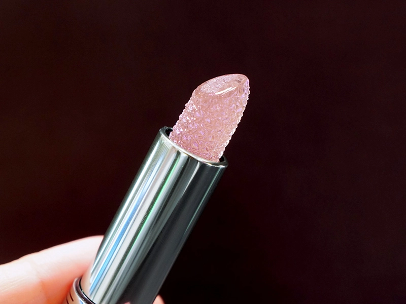 青みパールなどの微細なパールピグメントが美しく煌めき、クリアのライラックカラーが唇に透明感とシアーなツヤをプラス。
