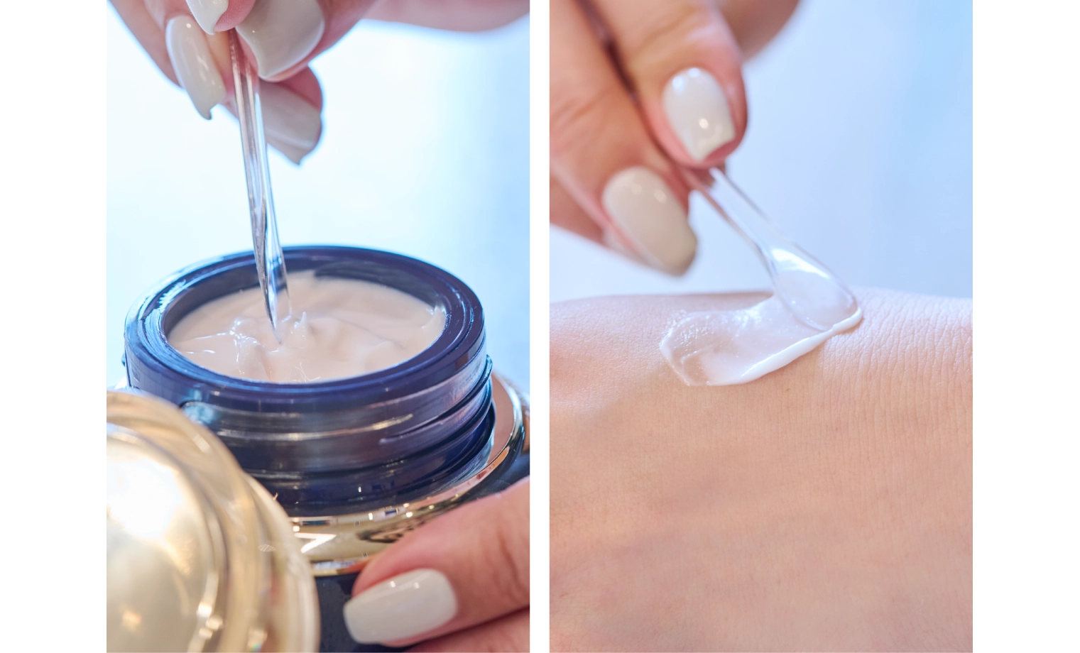 「『ジュール』はシルクのようななめらかなテクスチャーで、『ニュイ』はベルベットのようにやさしく、コクのあるテクスチャーです。どちらも生体模倣技術を応用したフォーミュラを採用しているので、角質までしっかりうるおいが浸透します」