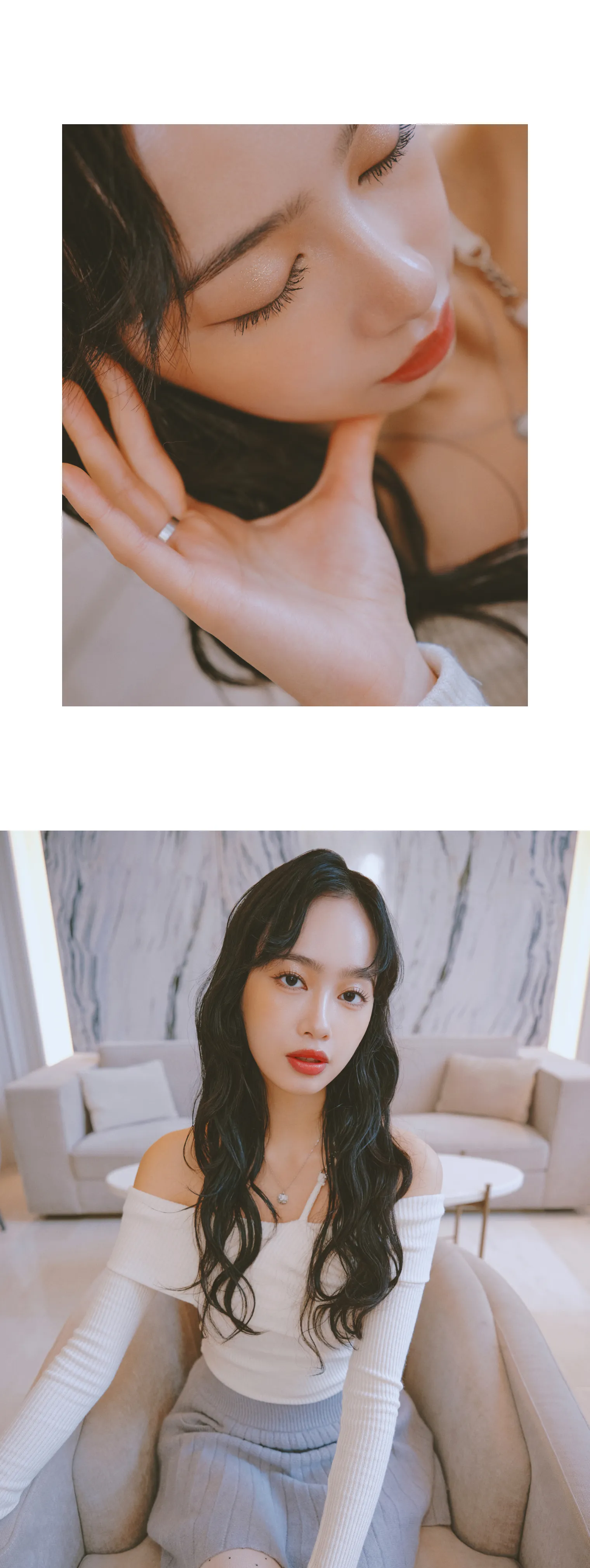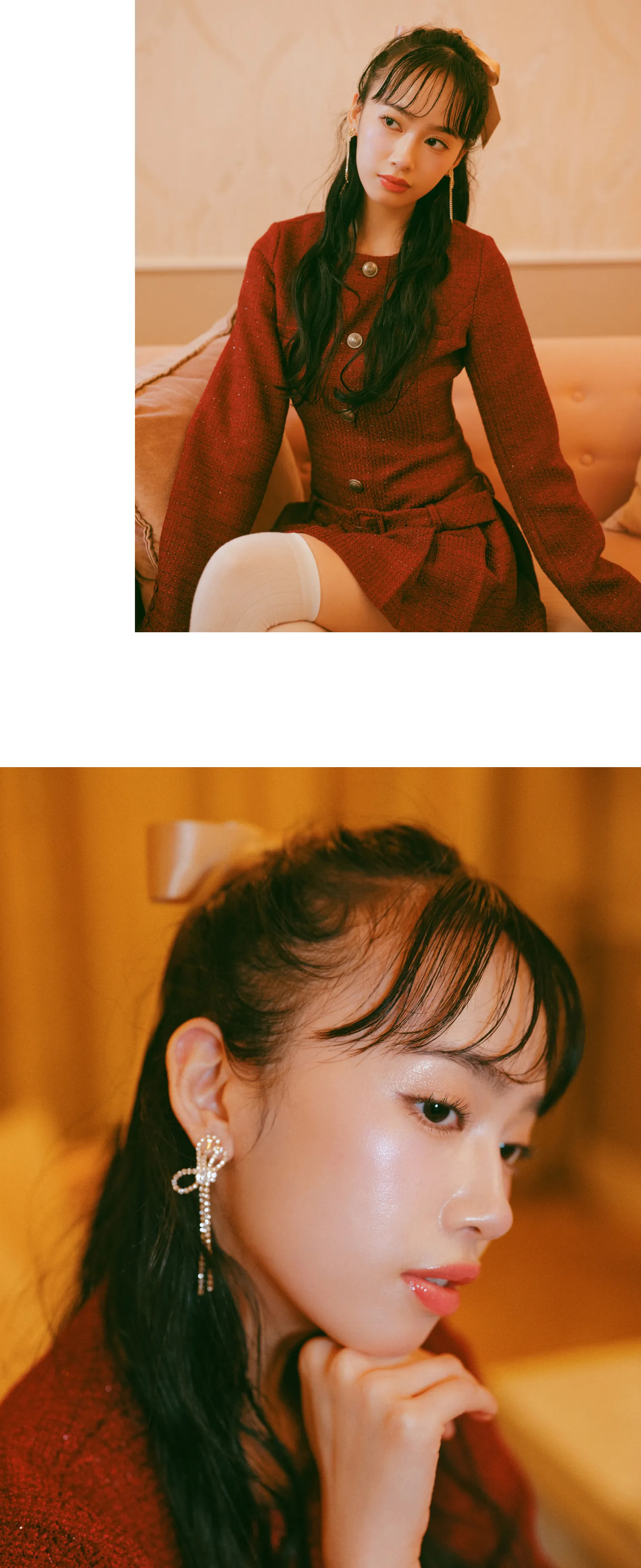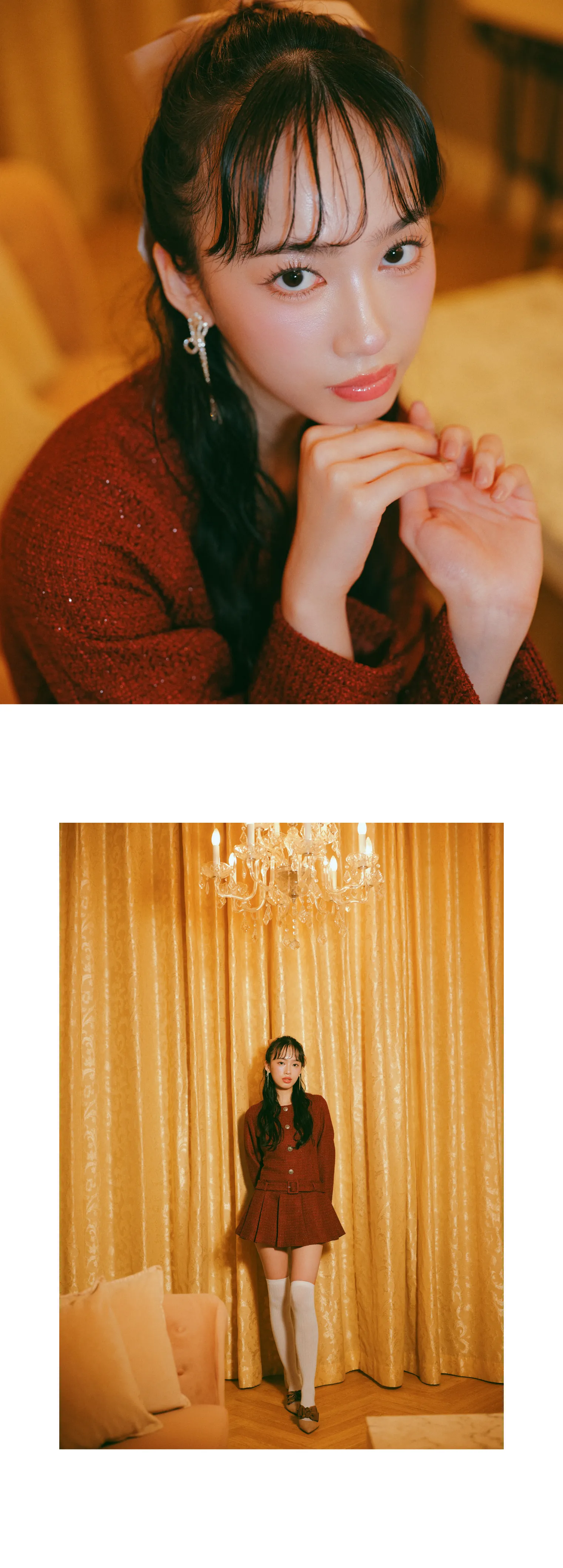look 2 : JACKET ¥13,200・SKIRT ¥4,950/MAJESTIC LEGON(CITYHILL : 06-6120-7180), TOP ¥8,215/ROSE FRANTZ(HANA SHOWROOM), NECKLACE ¥13,310・RING on right hand ¥12,870・RING on left hand ¥12,100/MUSEE.ART(HANA KOREA), BOOTS ¥29,700/DIANA(DIANA GINZA : 03-3573-4005), OTHER/STYLIST’S OWN