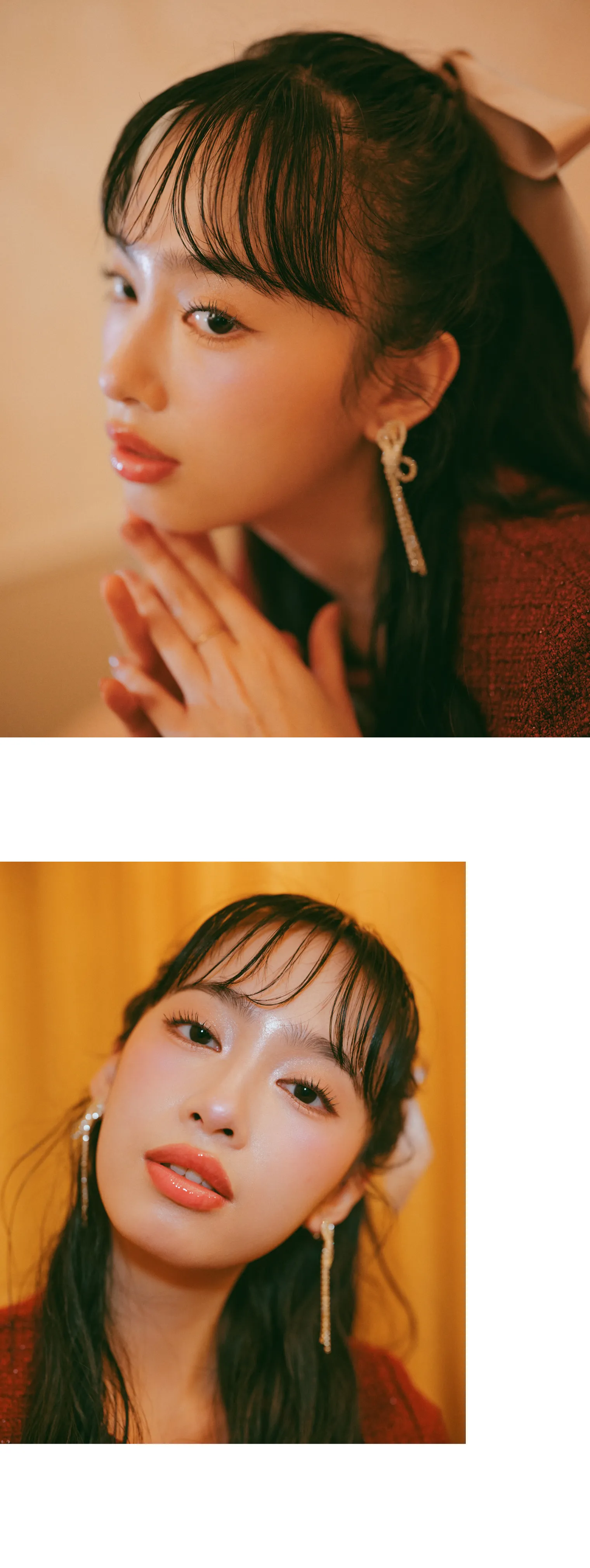 透明感あふれるツヤめきと、細かな光がちらばるようなキラめき。“Z世代っぽ全開”なノリとピュアなぬくもりを感じさせるメイクプランで、冬デートのテンションをアゲて。