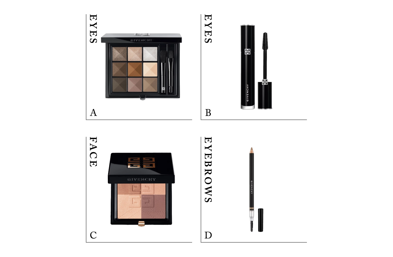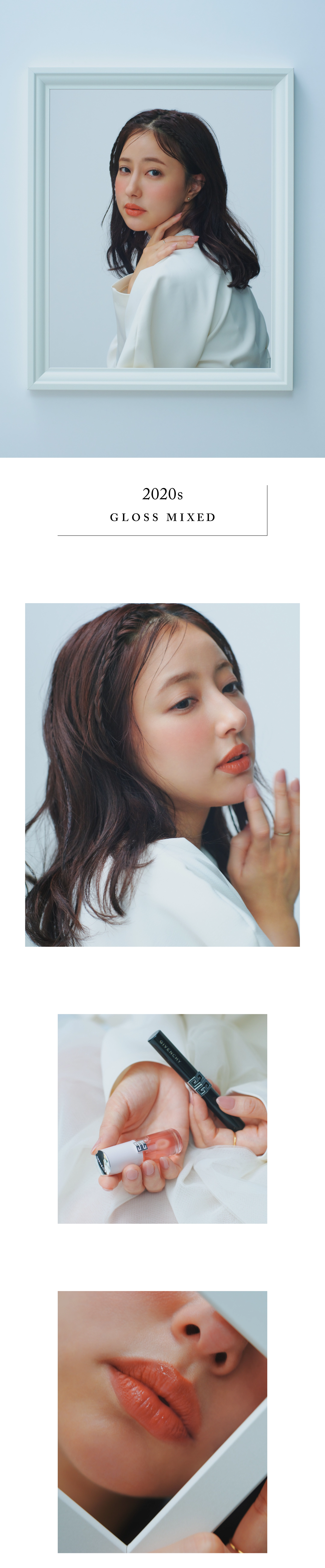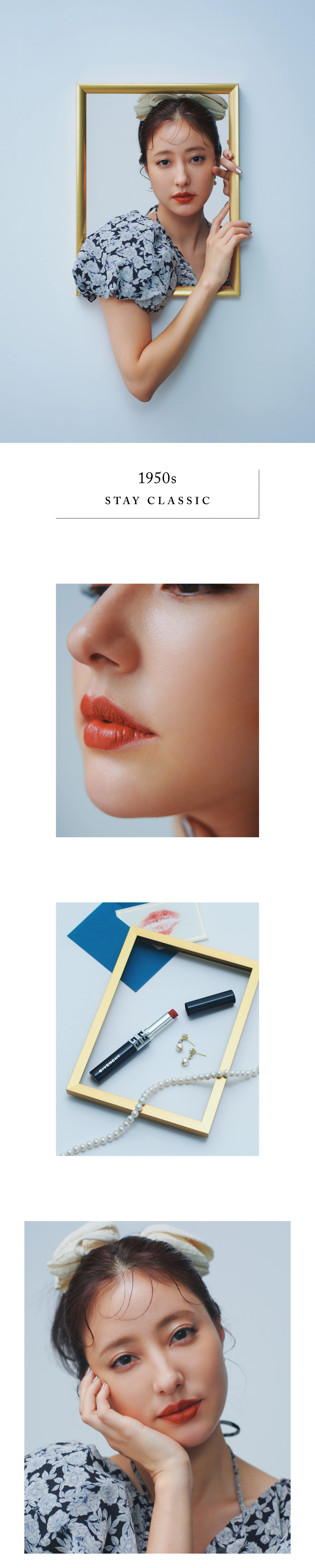 〈GIVENCHY (ジバンシイ)〉の〈ルージュ・ジバンシイ・ベルベット・マット〉を軸に叶えたのは、4つの時代のモードに着想を得たメイク。