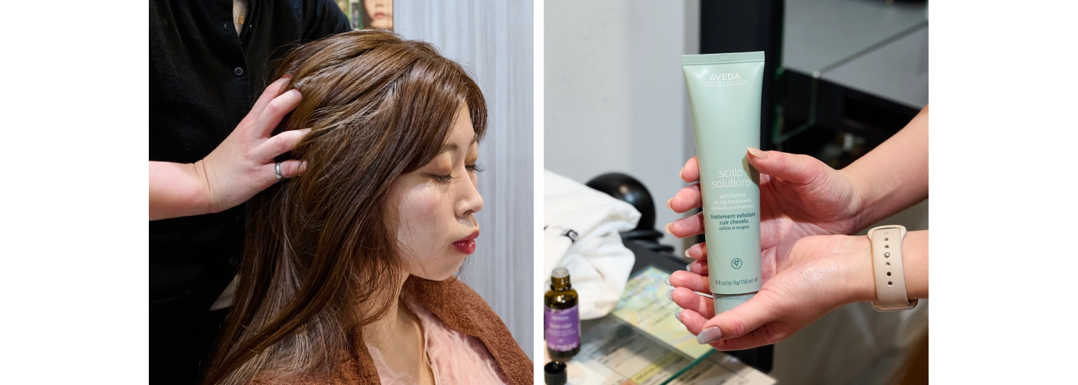 「ご自宅でシャンプーしていても、時間が経つと皮脂やスタイリング剤でどうしてもベタつきがちに。毛穴が詰まっていることもあります」と話すスタッフさん。