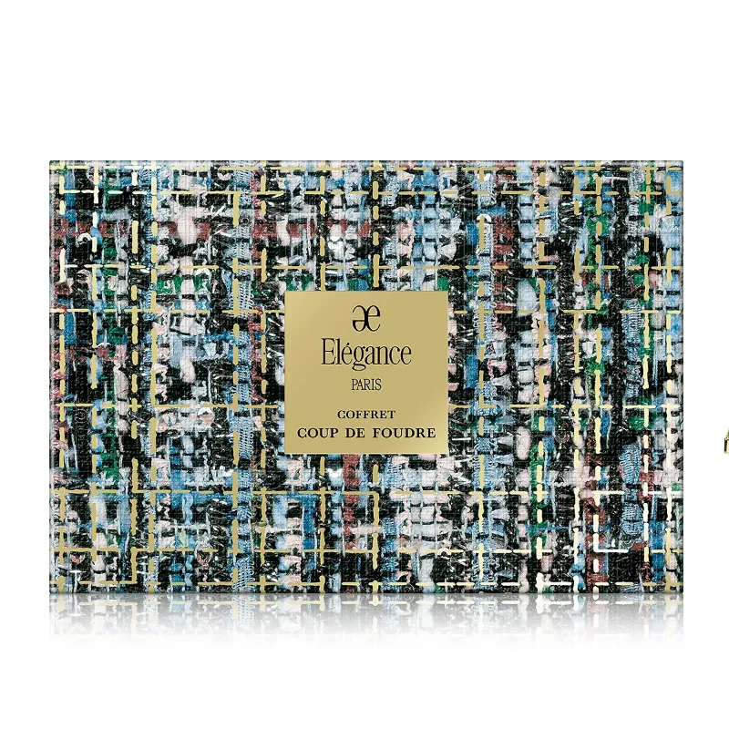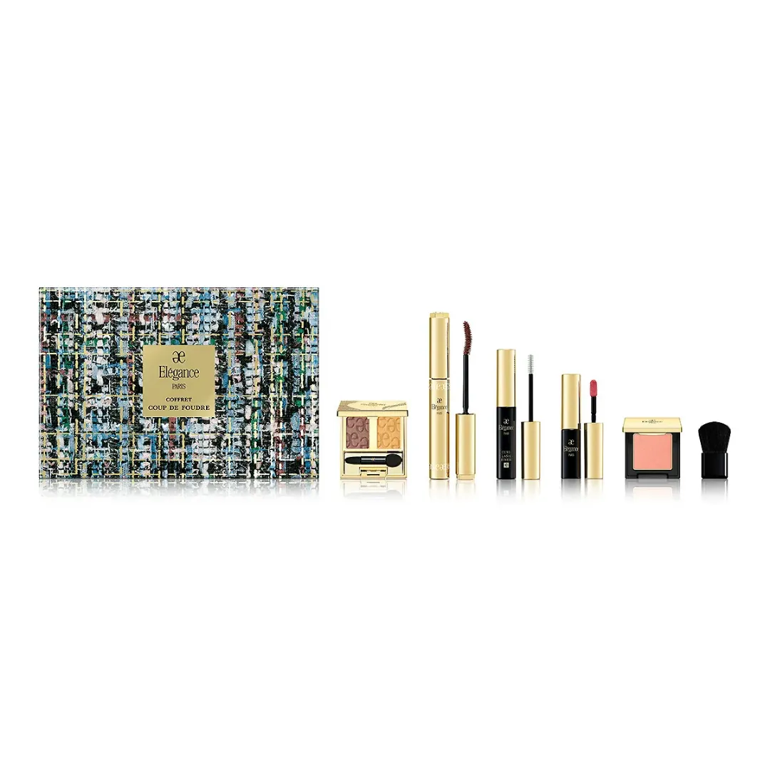 〈Elegance(エレガンス)〉のホリデーコフレのテーマは、フランス語で一目惚れを意味する"クードゥフードル“。一目見てうっとりする華々しいコフレのセットを楽しんで。
