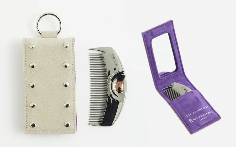 今回の特別なコラボレーションでは、“ファッションとして成立するコーム”をテーマにし、〈LOVECHROME®〉の人気インラインモデル「(R)K24GP ツキ ゴールド」と「(R)PG ツキ プレミアムブラック」に合わせて、UNITED ARROWS BEAUTY が監修した専用ケースをセット。
