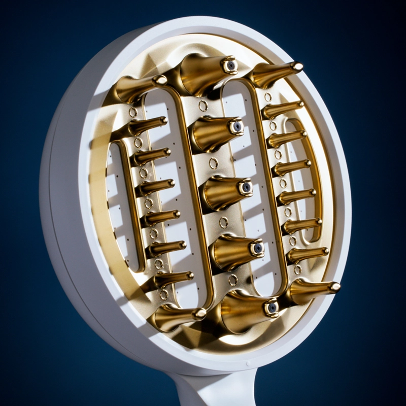 ラブクロム独自のなめらかなコーム形状を採用した「スカルプカッサノズル」が、頭皮にやさしくフィット。繊細な「マイクロ・ナノバブル」が、毛穴の奥までやさしく行き渡り、汚れや余計なトリートメント残留を取り除く。