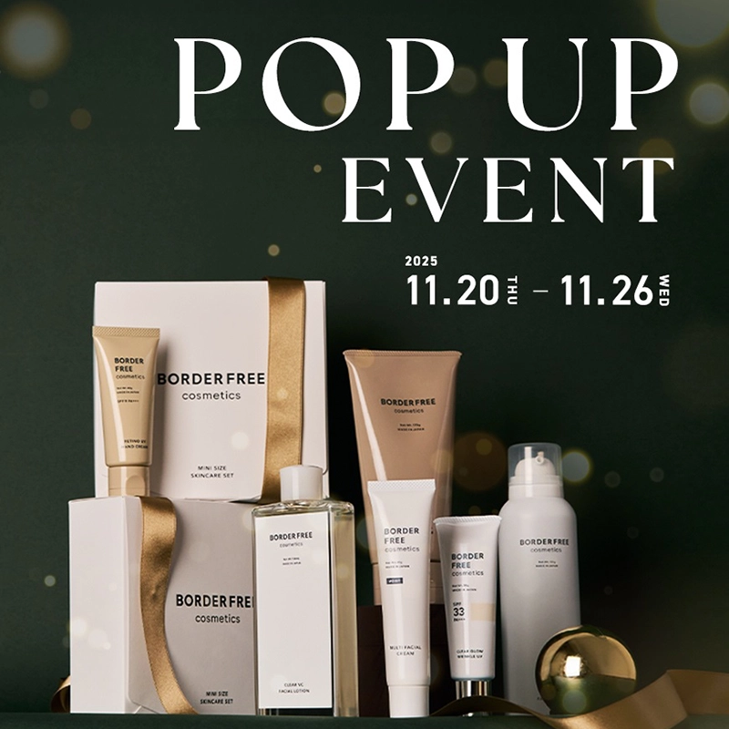 MADE IN JAPANのスキンケアブランド〈BORDER FREE cosmetics(ボーダーフリーコスメティクス)〉が、2025年11月20日(木)~11月26日(水)の期間、渋谷スクランブルスクエア6F+Q(プラスク)ビューティーにて、期間限定POP UPイベントを開催する。