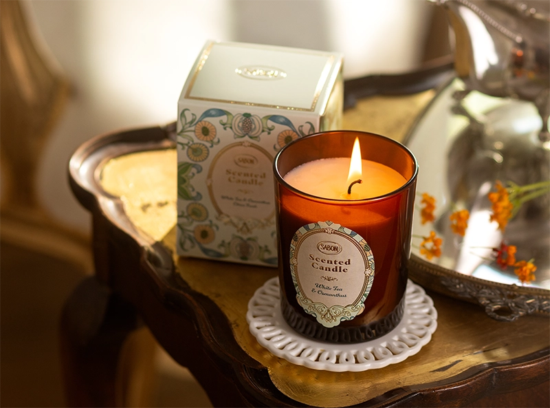 慌ただしい一日の終わりに、SABONのアロマキャンドルを灯せば、幻想的な香りと灯りが空間をときめきで満たし、ラグジュアリーなリラックスタイムへと導く。