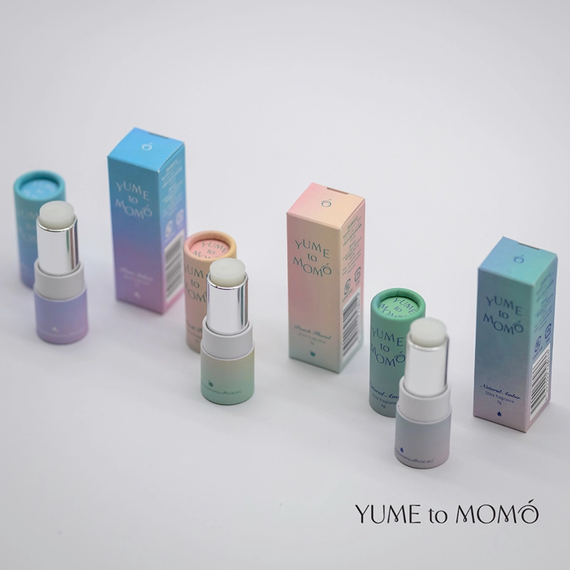 岡山の桃をコンセプトに2025年にスタートした共創型フレグランスブランド。F1層1,000人の声をもとに、0.2秒で纏えるスティック型「塗る香水」を開発。