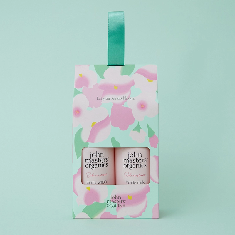 桜の香りのシャンプー&コンディショナーが春の訪れを感じる華やかなラッピングに入った限定セット。