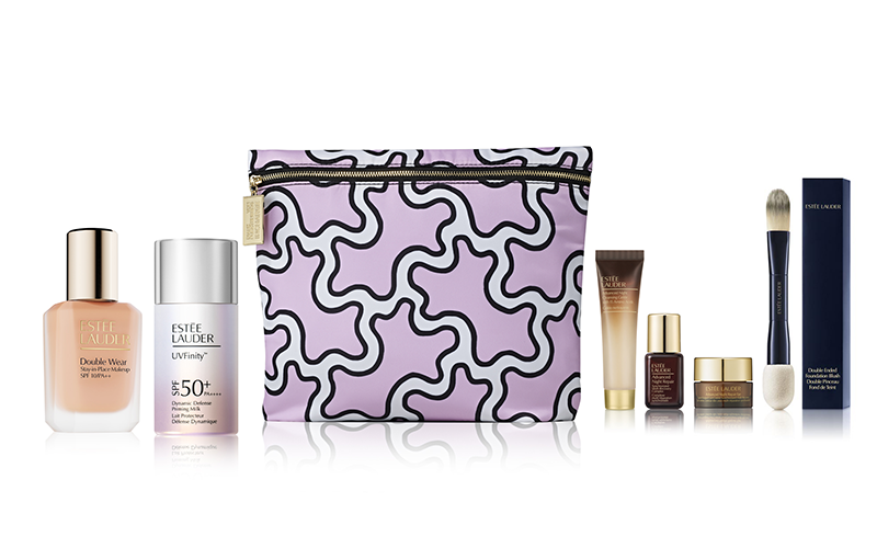 今春リニューアルを遂げたブランド ベストセラー ファンデーション「ダブル ウェア」など、ベース メーク製品を合計9,900円(税込)以上購入すると、コラボレーション限定のオリジナル バッグとブランドで人気のスキンケアのスペシャル サイズ3品とオリジナル ブラシをセットとしてプレゼント。