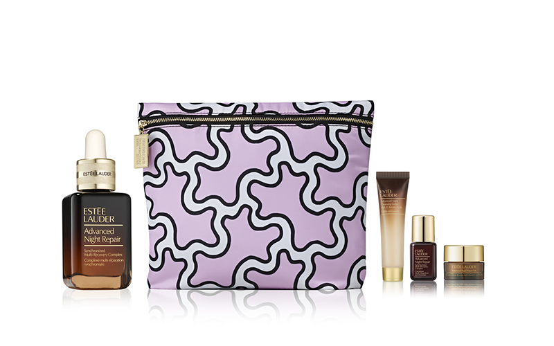 ベストセラー美容液「アドバンス ナイト リペア」や日本発の医薬部外品スキンケア コレクション「アクア チャージ」などのスキンケア製品を合計9,900円(税込)以上購入すると、コラボレーション限定のオリジナル バッグと人気スキンケアのスペシャル サイズ3品をセットとしてプレゼント。