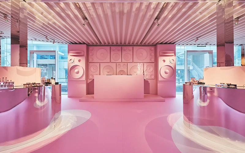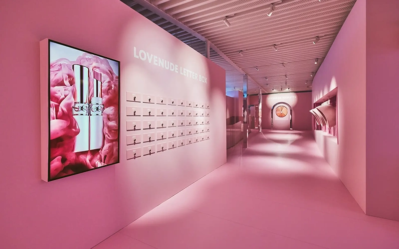 「YSL LOVENUDE」のセンシュアルなピンクヌードカラーに包まれた“YSL LOVENUDE HOTEL TOKYO”は、1FがDJブースも設置した『RECEPTION』フロア、2Fは、「YSL ラブヌード リップスティック」の“ふわじゅわ”体験を各ブースで楽しむことができる『LOBBY GAME』フロア、3Fは、「YSL ラブヌード リップスティック」を始めとする、YSLのアイコンリップやフレグランスを自由に試すことができる『GUEST ROOM』フロアで構成された、特別なフォトジェニックなホテルとなっている。