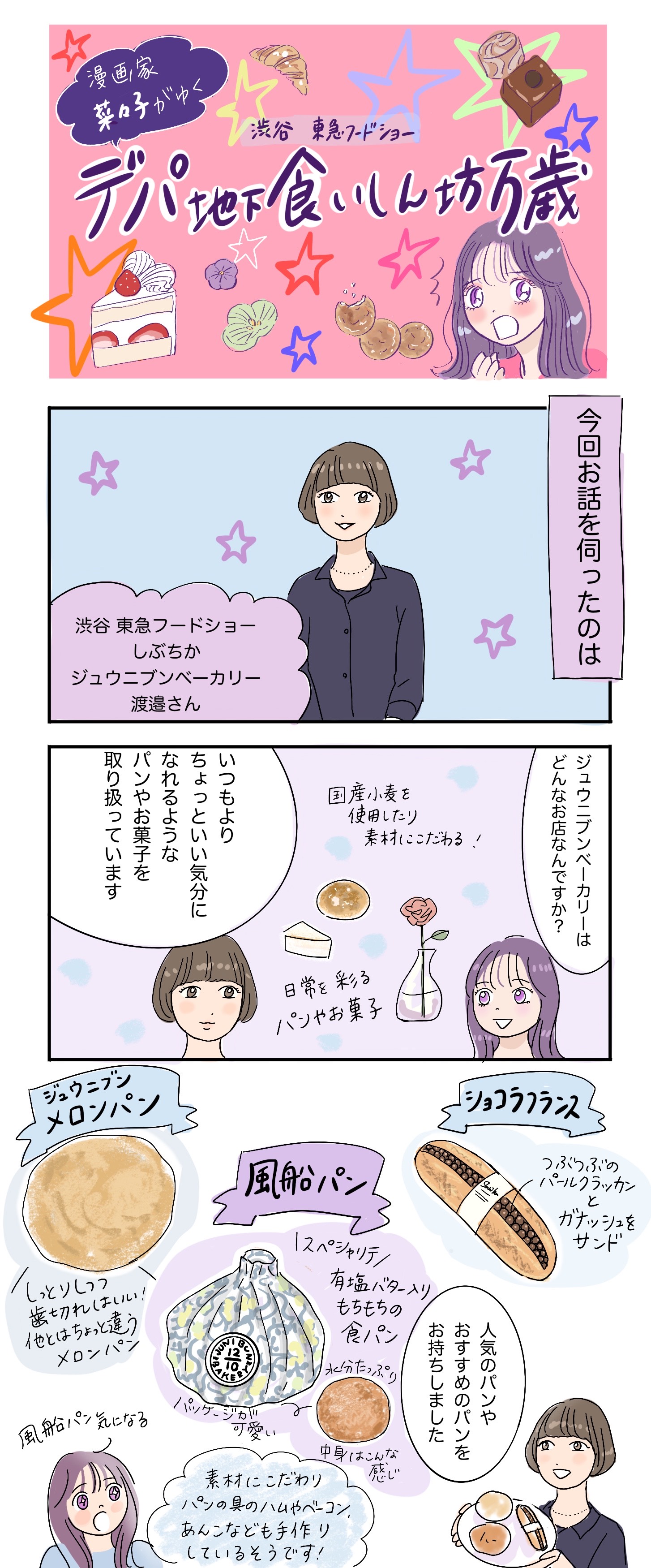 渋谷にはおいしいグルメがたくさん!歩くだけでも楽しいデパ地下から、漫画家・菜々子がおすすめのグルメの裏側をご紹介します。今回は渋谷 東急フードショー(しぶちか)にある、「いつもよりちょっといい気分、いい暮らし。」をコンセプトにしたベーカリー「ジュウニブン ベーカリー 渋谷」です。