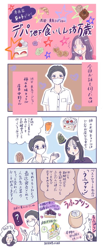 渋谷にはおいしいグルメがたくさん!歩くだけでも楽しいデパ地下から、漫画家・菜々子がおすすめのグルメの裏側をご紹介します。第53回目は渋谷 東急フードショー(渋谷マークシティ1階)にある、季節感溢れるケーキ、焼き菓子、ショコラなどを取り扱う「柿の木坂キャトル」です。