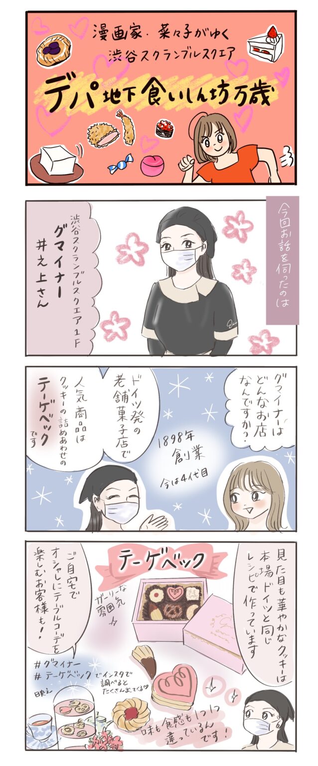 渋谷にはおいしいグルメがたくさん!歩くだけでも楽しいデパ地下から、漫画家・菜々子がおすすめのグルメの裏側をご紹介します。第49回目は渋谷スクランブルスクエア ショップ&レストランの1F東急フードショーエッジにある、ドイツの老舗パティスリーで渋谷エリアに初出店の「Gmeiner(グマイナー)」です。