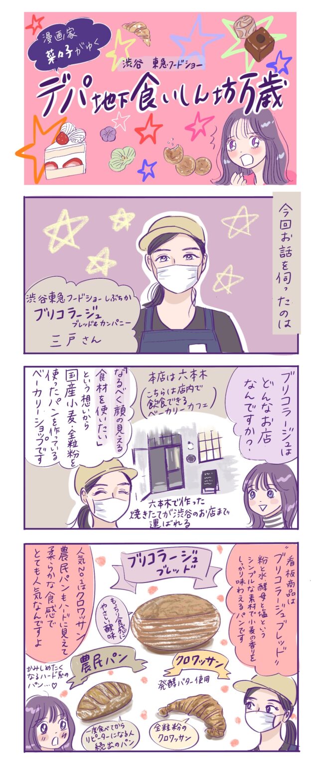 渋谷にはおいしいグルメがたくさん!歩くだけでも楽しいデパ地下から、漫画家・菜々子がおすすめのグルメの裏側をご紹介します。今回は渋谷 東急フードショーB1Fにある商業施設初出店で多彩なパンが楽しめる「bricolage bread & co. (ブリコラージュ ブレッド アンド カンパニー)」です。
