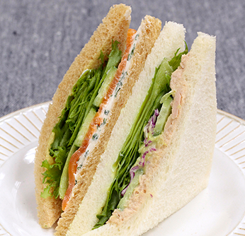 創業54年の老舗サンドイッチ専門店。彩り豊かな自然の食材、四季折々の旬の食材を集めて、さまざまにアレンジし、ブーケのようなサンドイッチを届けたいという思いをブランドネームに込めています。無農薬レタスや佐賀有明鶏のチキンカツなど素材にこだわり、季節を感じるおいしい組み合わせでサンドイッチを提供します。
