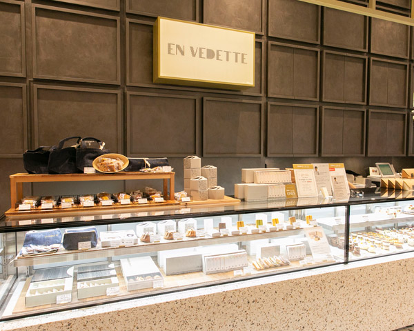 大人気のクリエイティブパティスリーがファッションとアートの街シブヤと融合、新〈EN VEDETTE〉として登場します。〈EN VEDETTE〉のシェフは、世界のさまざまなコンクールで入賞や受賞歴を誇る森大祐氏。シェフの遊び心と本格的な技巧が融合した独創的なヴェリーヌや従来のイメージを覆すシルエットのクグロフなど、渋谷スクランブルスクエア限定商品がたくさん。またシンプルながらもセンス抜群、スタイリッシュな新デザインも乞うご期待。