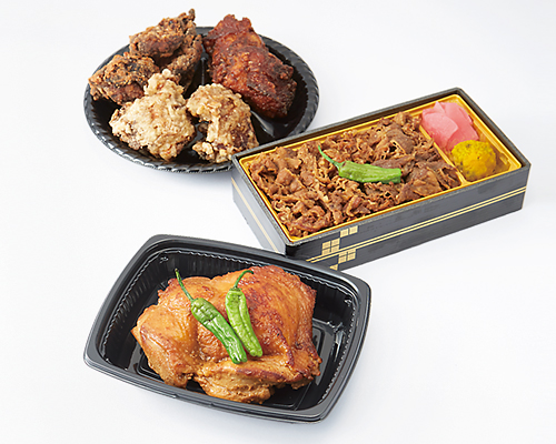 拳のように大きな人気の唐揚げをはじめ、麹と特製だれに漬け込んだ肉を使った弁当や、ご飯にも酒肴にもぴったりな手づくりの惣菜をバラエティーゆたかにご用意しています。