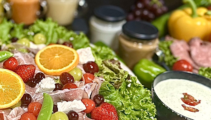 彩り豊かな厳選された旬の野菜や果物を使用し、素材の良さを引き立てる構成にこだわったサラダ、ジュースをご提供。