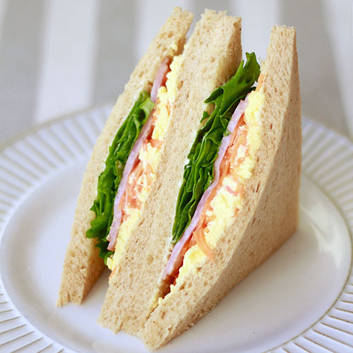 ホテルの朝食を思わせるふわとろタマゴとポークスライスを組み合わせた、毎日でも食べたくなるサンドイッチです。