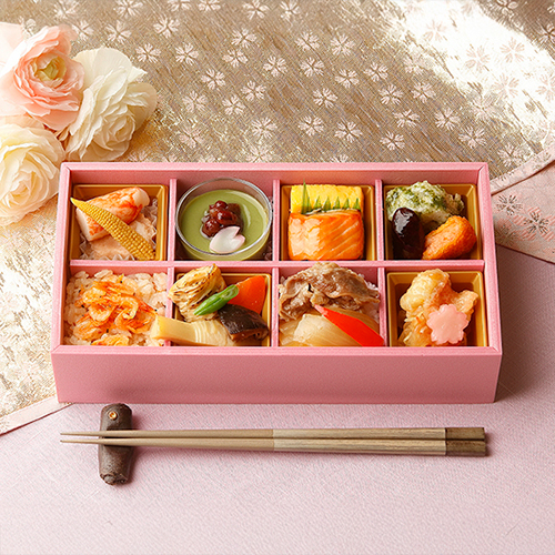 春ならではの桜海老御飯に、人気の牛すき焼が乗った白御飯、性別年代を問わず楽しめる御飯を二種類お詰めしました。甘味には好評の抹茶プリンをお入れして、満足のある内容に仕上げております。