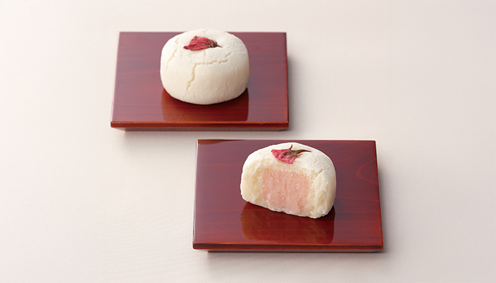 桜葉の香りを練り込んだ桜あんを黄味しぐれで包み塩気のある桜花を添えました。