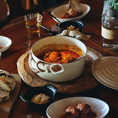 〈ル・クルーゼ〉のストーンウェアは耐熱耐冷に優れ、冷蔵・冷凍を始め、電子レンジ・オーブンを活用した幅広い料理シーンに対応し、デザインやカラーに加え機能性や耐久性が魅力です。