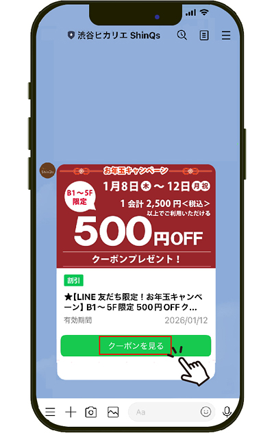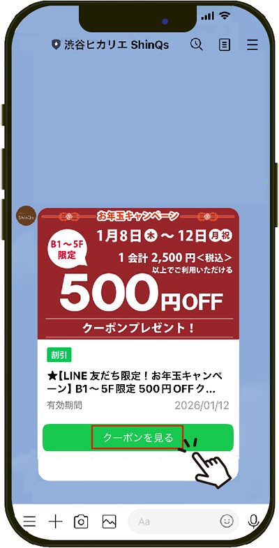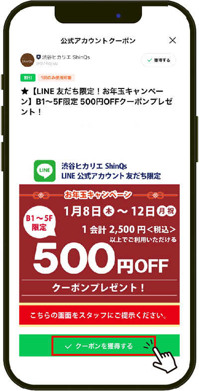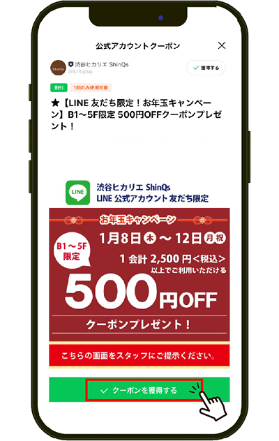 「ShinQs B1~5F限定 500円OFFクーポン」を