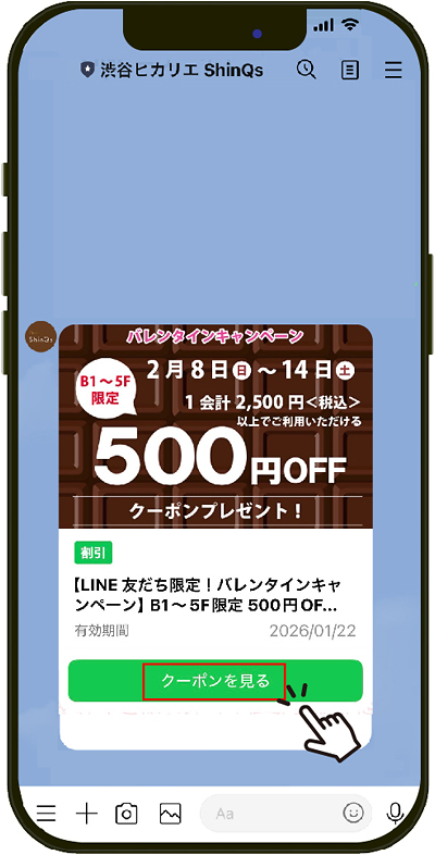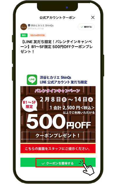 「ShinQs B1~5F限定 500円OFFクーポン」を