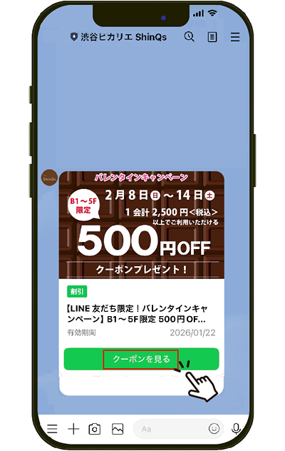 2月7日(土) 18時30分配信の「クーポン」をショップスタッフにご提示ください。