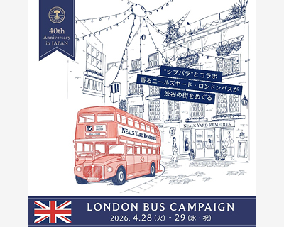 日本上陸40周年をむかえた〈ニールズヤード レメディーズ〉のロンドンバスが渋谷の街を走行します。