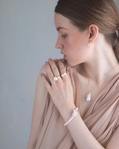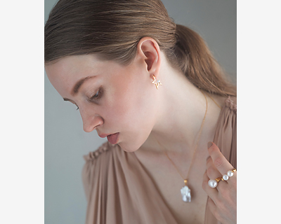 ひと粒ごとに異なる表情を宿すバロックパールを使用し、甘さを抑えた上品さと、凛とした気品を兼ね備えたジュエリーをご提案しています。