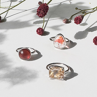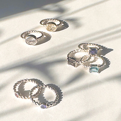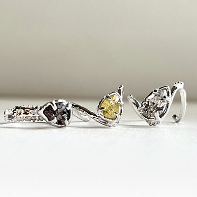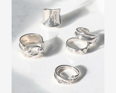 個性的な1点物のリングを中心に、イヤカフ、ピアス、ネックレスなどもラインナップ。天然石ジュエリーと組み合わせてレイヤードな世界観を楽しめるシルバージュエリーも多彩にご用意しました。