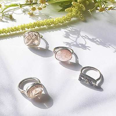 表情豊かで鮮やかな色味の天然石ラインと、ベーシックで合わせやすいシルバーラインの、2ラインを展開するジュエリーブランド〈coquille(コキーユ)〉。