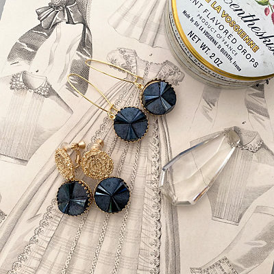 ヨーロッパで作られた古い時代のガラスボタンをアップサイクル。